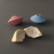 プラスチックで成形した本体に、左官材仕上げのような凹凸塗装を施しています。