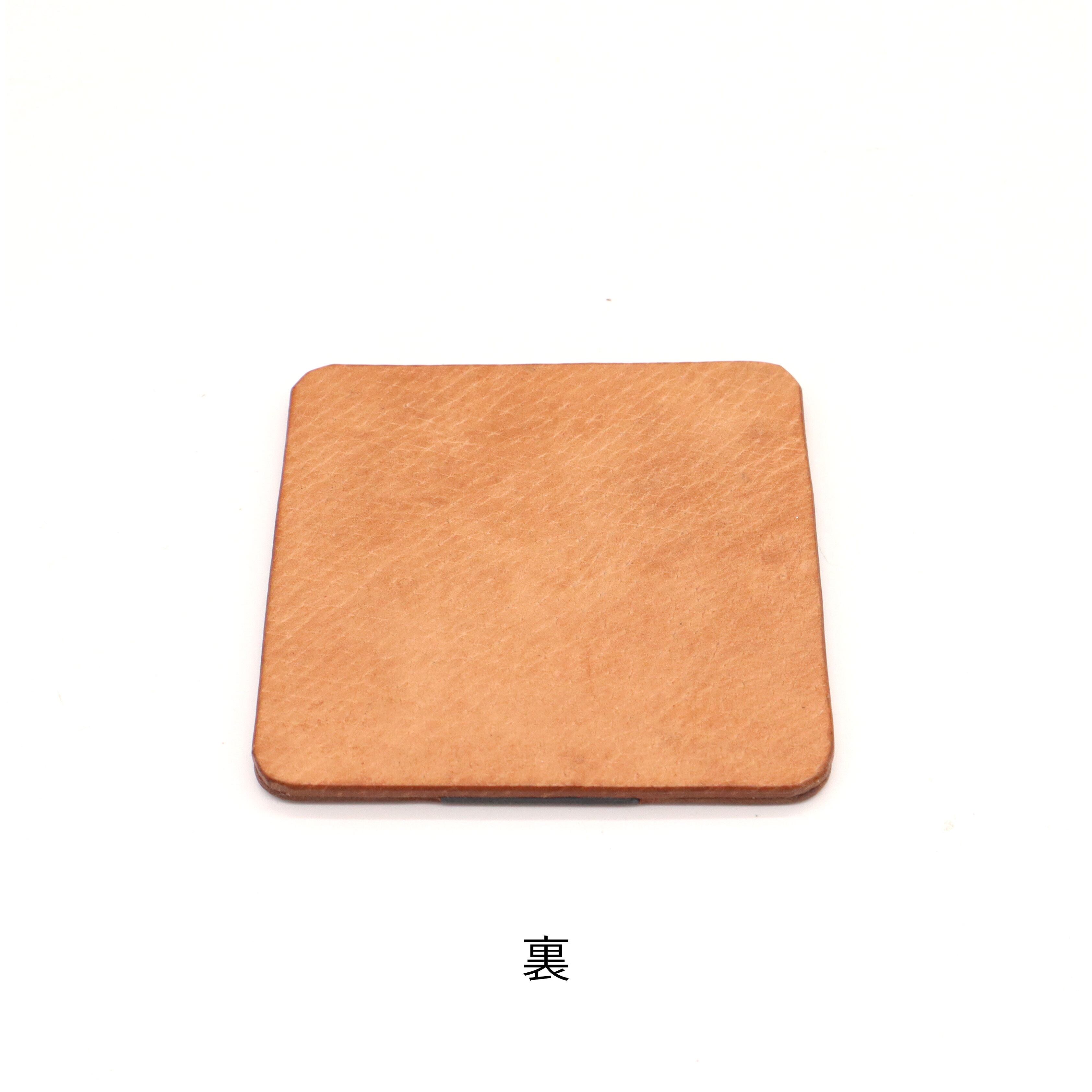 レザーの端切れをパズルのように貼り合わせて製作したコースターです。