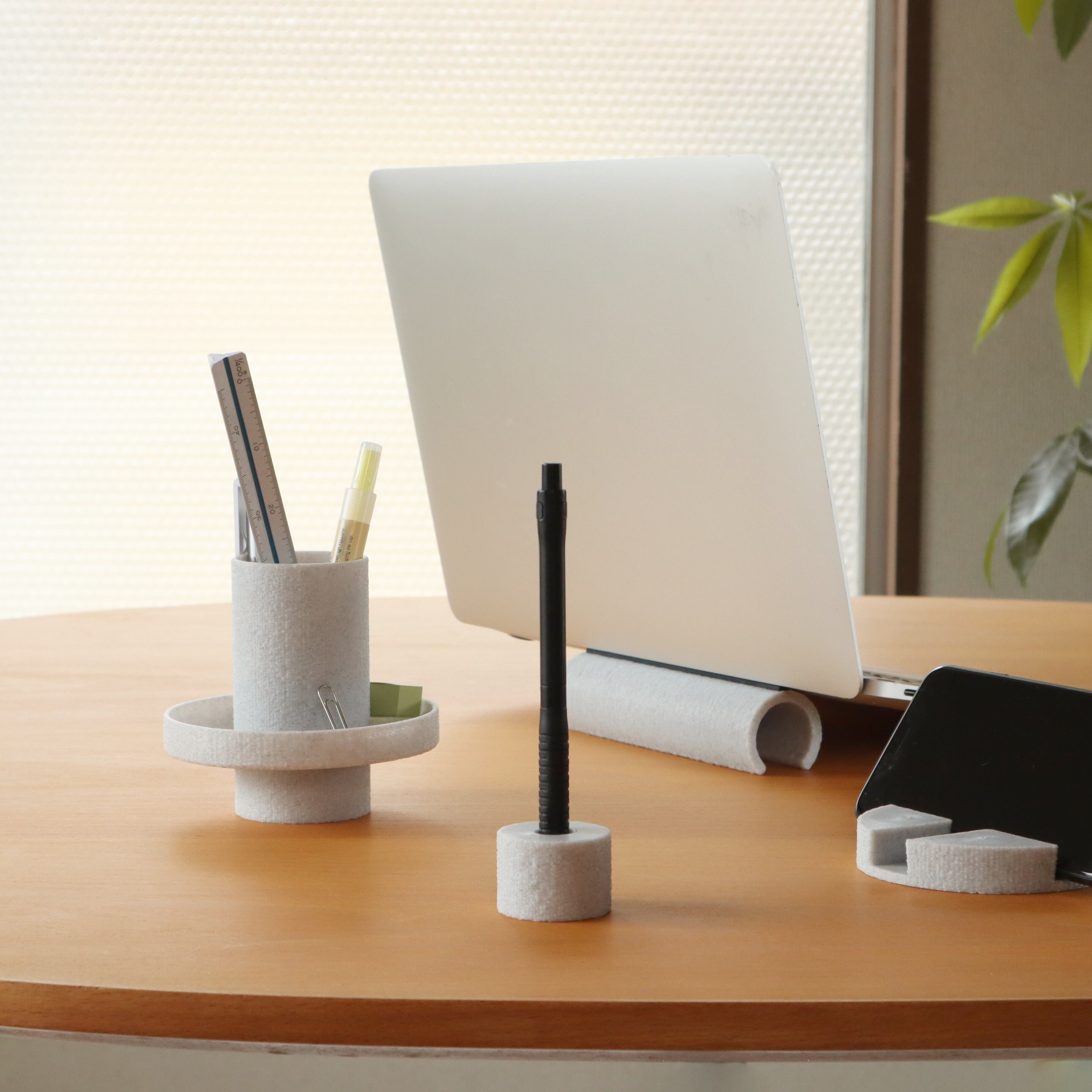 内側に段差を付け、ペンがフィットし真っ直ぐに立つよう設計したスタンドです。
