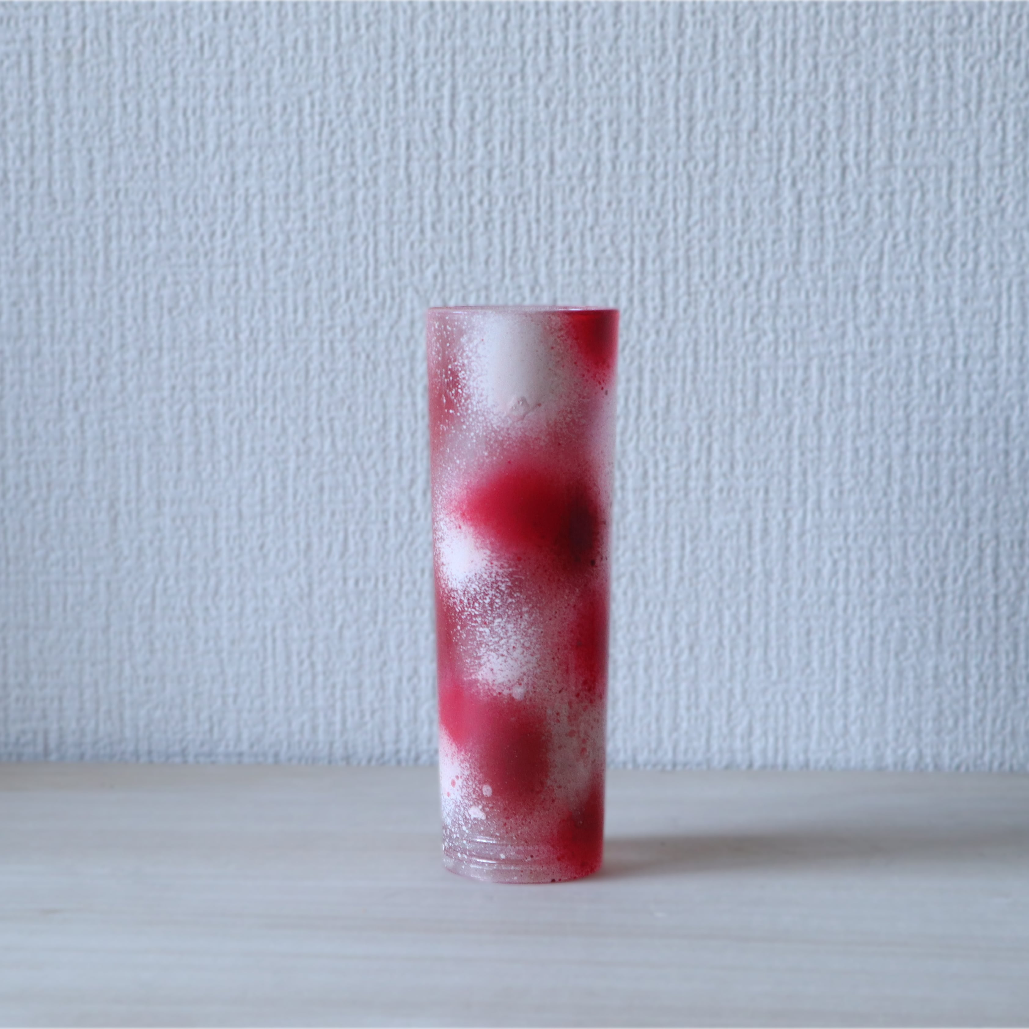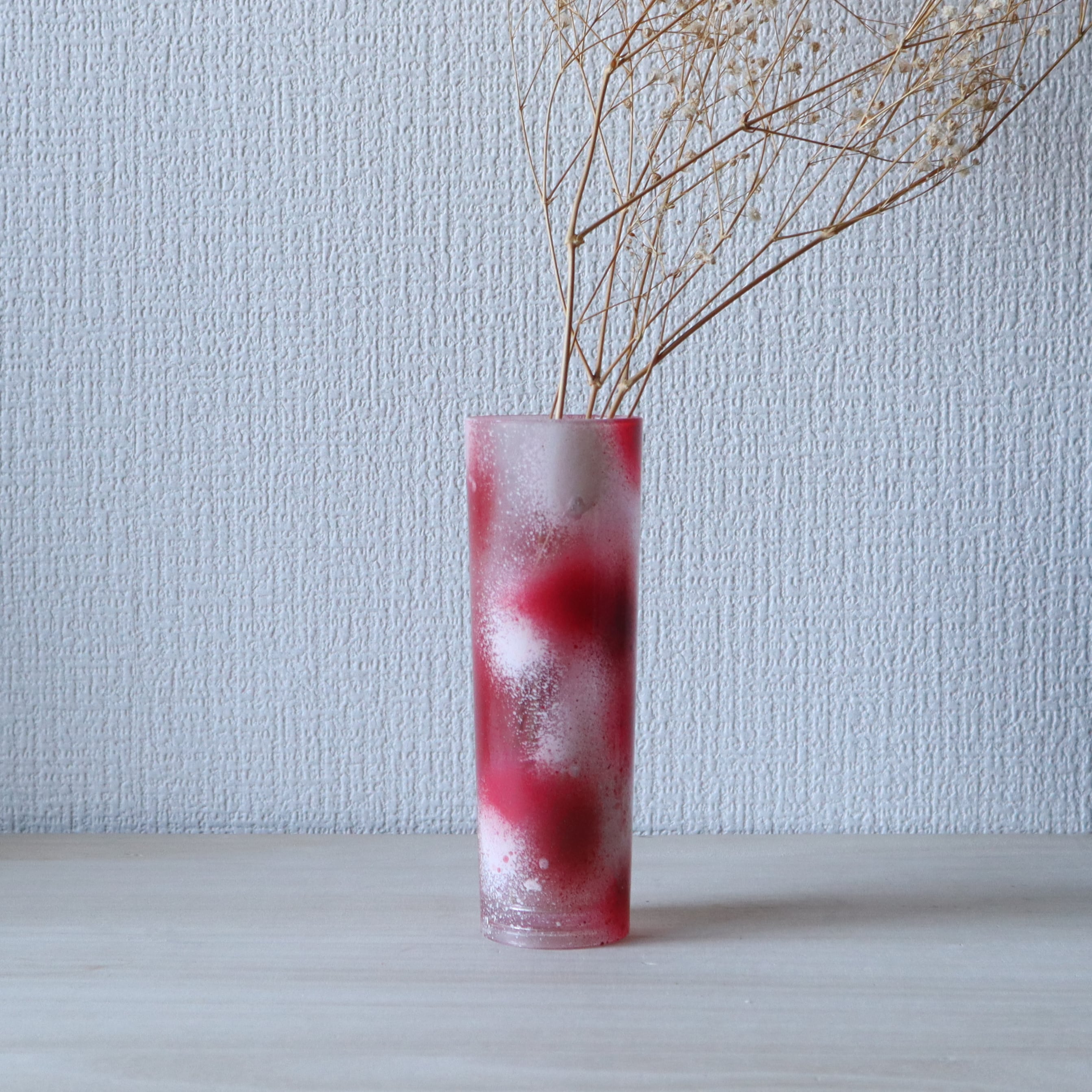 不要になった花瓶をスプレーでランダムに塗装後、レジンでコーティングしました。